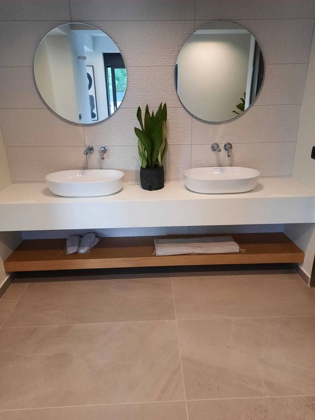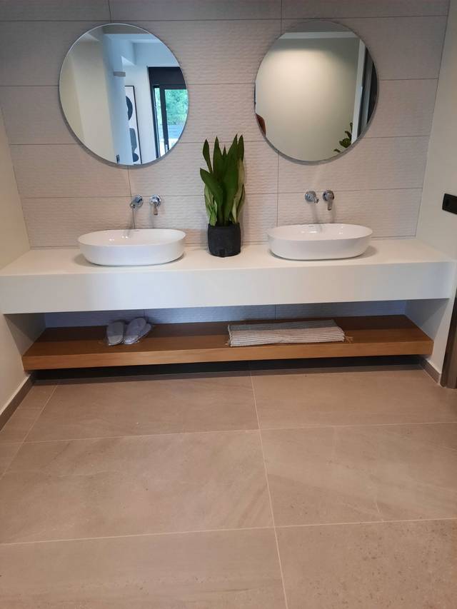 Το υλικό που χρησιμοποιούμε είναι τοCorian – Κόριαν της Dupont,που συνδυάζει την άψογη αισθητική με τη μεγάλη αντοχή και τη δυνατότητα προσαρμογής σε κάθε σχήμα.